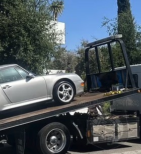 Kanye West's wife Bianca Censori suffered an embarrassing mishap when her silver Porsche was towed in Los Angeles on Wednesday.