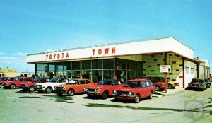 A person goes into a USA Toyota dealer and two Land Cruisers are on the showroom floor side-by-side.