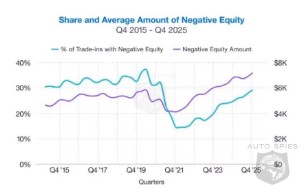 Auto debt continues to be a growing challenge for U.S. car buyers, and new data from Edmunds shows the pressure is intensifying. In Q4 20251, 29.3% of trade-ins toward new-vehicle purchases were underwater, meaning owners owed more on their vehicle than it was worth at the time of trade-in. That marks the highest share Edmunds has recorded since Q1 2021, when 31.9% of trade-ins were underwater.