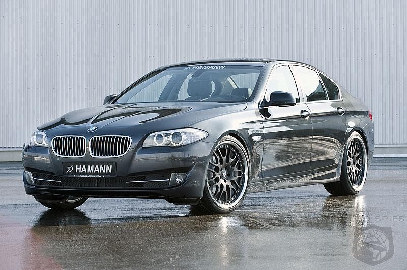 Hamann has released the body styling kit package for the 2011 BMW 5-Series. The package with 20-inch wheels, LED daytime running light inserts, stainless steel four-tailpipe sport exhaust system, lowering kit (which reduces ride height approximately 35mm), front spoiler (mounts to OE bumper), aggressive side skirts, a rear bumper center valence, a roof-mounted spoiler, and a trunk-mounted spoiler.