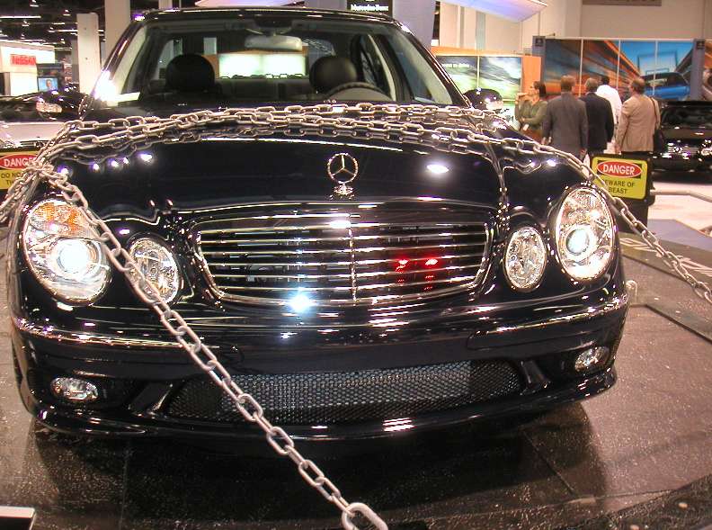 Best booth display in Anaheim The beast gets chained! email: avoglezon@mbzlongbeach.com If you've been seeeing the latest E55 TV ads, they've been called "The Beast".Well, in the MB booth in Anaheim, the beast was chained...Very creative!Check out the small LED eyes mounted in the grill... email andre: avoglezon@mbzlongbeach.com