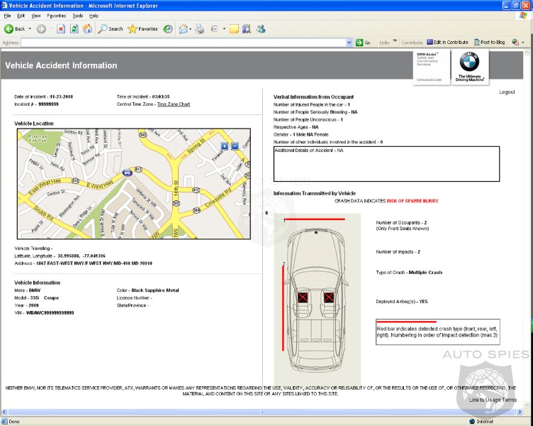 “Knowing not only the precise location of a crash but also the potential for life threatening injuries immediately will propel emergency services to the scene armed with the necessary life-saving tools,” states Dr. Jeffrey S. Augenstein, director of the William Lehman Injury Research Center in Miami. “When fully implemented, a trauma system based on enhanced Automatic Collision Notification will save thousands of lives. BMW has taken a leadership position in this effort. BMW is due a tremendous amount of credit for spearheading this life-saving safety initiative.”