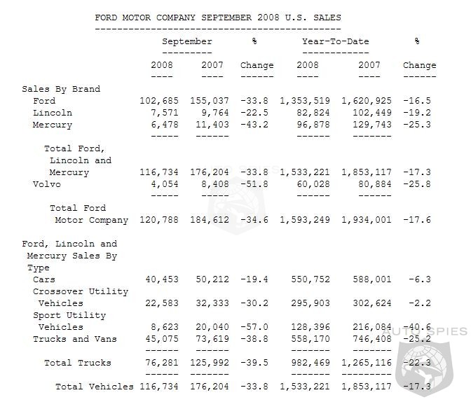 Ford, Lincoln and Mercury dealers reported total sales of 116,734 in September, down 34