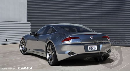 With its Q-Drive powetrain, the Fisker Karma will have an all-electric range of 50 miles after which the gasoline engine turns a generator to charge the lithium-ion battery pack. Basically it becomes a regular hybrid vehicle once 50 miles have been completed. Fisker estimates that most Karma drivers who charge their vehicle overnight and commute less than 50 miles a day will achieve a fuel-economy of 100 mpg.