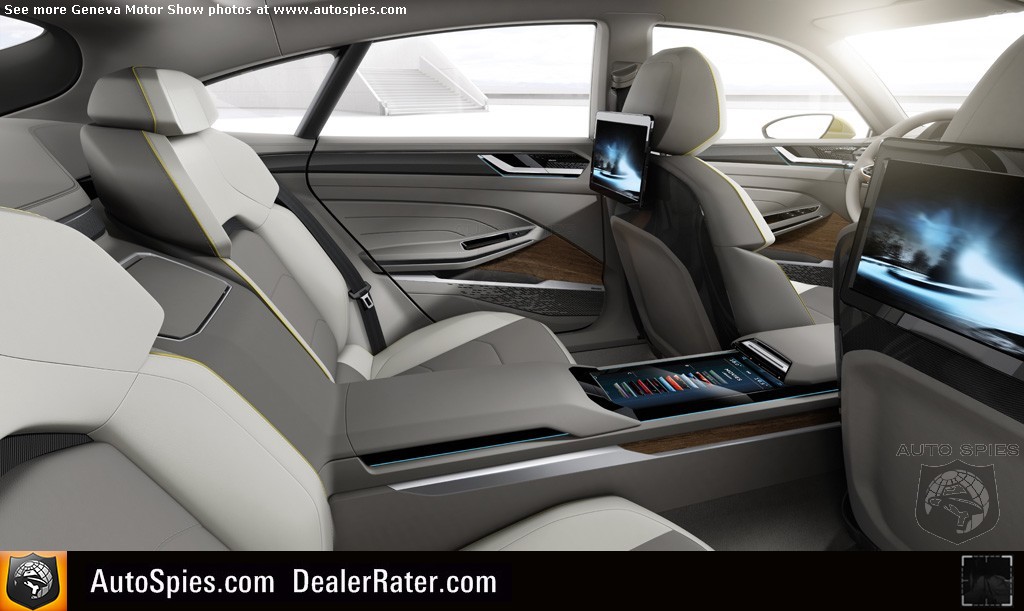 The Sport Coupé Concept GTE is powered by a plug-in hybrid drive system that is both economical and sporty. The concept car uses a turbocharged 3.0-litre TSI V6 direct-injection engine that produces 295 horsepower (220 kW) and maximum torque of 369 pound feet. The electrical components consist of a lithium-ion battery that’s housed in the center tunnel and two electric motors. The 54-hp (40 kW0 front motor is integrated in the 6-speed DSG dual-clutch automatic transmission and the rear electric motor develops 114 hp (85 kW). The total available system power is 374 hp (279 kW).