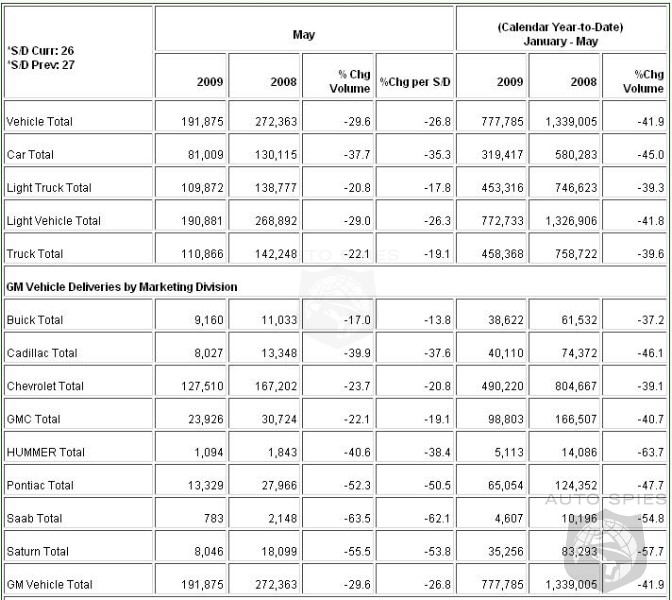 General Motors dealers in the United States delivered 191,875 vehicles in May, down 29.6 percent compared with a year ago. However, when comparing GM's May sales with April, total volume was up 11 percent, or about 19,000 cars, crossovers and trucks resulting in the best monthly sales performance so far in 2009. "We were able to record our best monthly sales result of the year in May as we are seeing more positive signs in housing and consumer confidence in the market," said Mark LaNeve, vice president, GM North America Vehicle Sales, Service and Marketing. "Those signs, along with more clarity on the New GM, are providing some additional consumer confidence. With GM's reinvention, the company has cleared a path for future success supported by world-class products such as the new Chevy Camaro, Equinox, Traverse and Malibu. We have compelling new offers in the marketplace, including reduced-rate financing available through GMAC, that encourage our customers to visit a showroom and buy today."