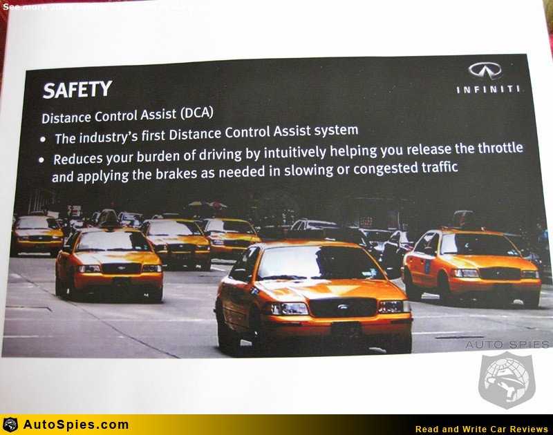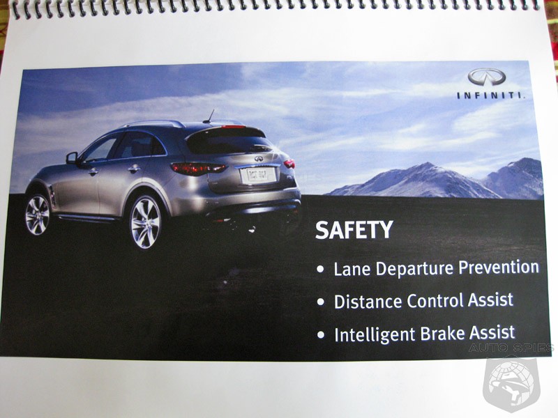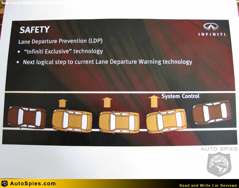 Well, with the new 2009 FX35 and FX50 they are raising the bar again with a new features like all-around cameras (like on the EX35), Intelligent Cruise Control (Full Speed Range) and a totally unique feature to the FX's, Distance Control Assist.
