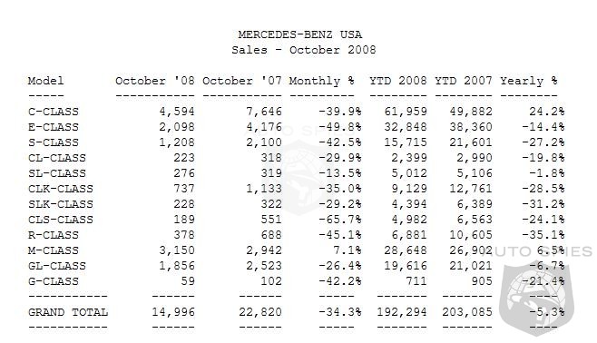 Sales highlights for Mercedes-Benz USA include a 7.1 percent increase in M-Class SUV sales for the month. 3,150 M-Class vehicles were sold compared to 2,942 M-Class vehicles in October 2007. For the year-to-date, the popularity of the M-Class line of SUVs continued momentum with a 6.5 percent increase in sales (28,648 units vs. 26,902 units). Year-to-date sales of the volume-leading C-Class also grew. 61,959 C-Class models were sold so far in 2008, compared to the 49,882 units in the same period last year, marking a 24.2 percent increase.