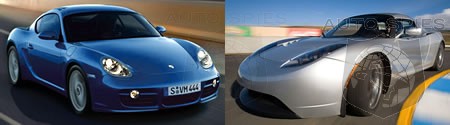 Remember the electric-powered Ruf Porsche Cayman we saw last month? Well, the executives at Porsche weren’t to happy with the car and are rumored to be working on their own lithium-ion-powered prototype. And that’s where the American made Tesla Roadster comes in.