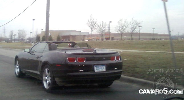 Carscoop reports:A pre-production version of the upcoming 2012 Chevrolet Camaro Convertible was caught on the road with its soft-top in the wrong position for this time of year in Michigan by a member of the Camaro5 forum.The camera-phone scoopster claims the driver of the test car told him that the Camaro Convertible would be in U.S. dealer showrooms by next April, something that has already been confirmed by GM officials.The Convertible variant of the latest Camaro gets a simple cloth top... Geneva Motor Show Photo Gallery2011 Hyundai Sonata Launch Photo Gallery2010 Rolls-Royce Ghost Launch Photo Gallery2010 Chicago Auto Show Photo GalleryAutoSpies.com Photo GalleriesIf you want to see your photos running on our homepage photo ticker, be sure to upload your photos on the go by sending them to Mobile@AutoSpies.com Share on FacebookRead Article