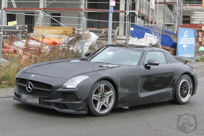 For the first time, we're seeing the SLS AMG Black's face and it's unique rear spoiler. We had a hunch that something was up as the initial prototypes were ALWAYS spotted with the rear spoiler in the up position.