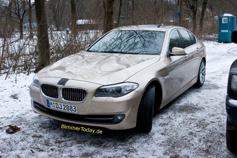 Another day and new photos of the next generation BMW 5 Series due to launch this Spring. If yesterday we had the chance to admire a beautiful black painted 535i, today, our sister blog BimmerToday returns with new photos of a 5 Series sporting the Milano Beige color.