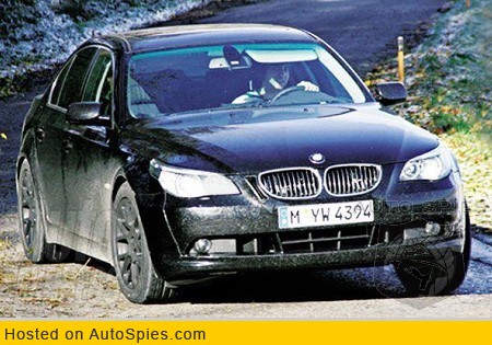 Here is a quick spy shot of the new upcoming 2008 BMW 5 Series caught testing in Germany. it may look like any other 5-Series but if you look closely you’ll notice a new front bumper that seems to be redesigned to improve cooling which can indicate a new engine and gearbox. You can also see the extended arches that indicate a longer wheelbase. The new 2008 BMW 5 Series might not be as long as the one released especially for China but will have more room and new engine including a new 3.0 liter twin-turbo six-cylinder engine producing about 310 horsepower. A hydrogen-powered motor is also rumored.