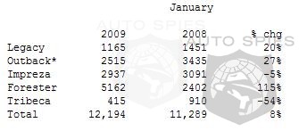 "In January, we maintained the momentum we established in 2008. The fundamentals - our products and dealers - are strong for Subaru." said Tim Colbeck, vice president of sales for Subaru of America, Inc. "The value, performance and durability of our product line-up keeps us well-positioned for the current market."