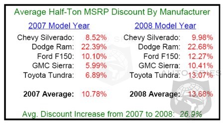 However, having said all of that, the Tundra's average discount matched the industry average, the Tundra did transition from being the latest-and-greatest new truck model in 2007 to just another offering in 2008, and 2008 was an abnormal year sales wise...so perhaps this is not significant.