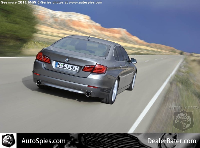 Initially, the 5-Series will be equipped with two motor choices; the 550i and 535i. The 550 will have a 4.4 liter, twin-turbo'd V8 good for 400-horsepower, while the 535 will churn out 300-horsepower from its 3.0 liter, turbo inline-six motor.