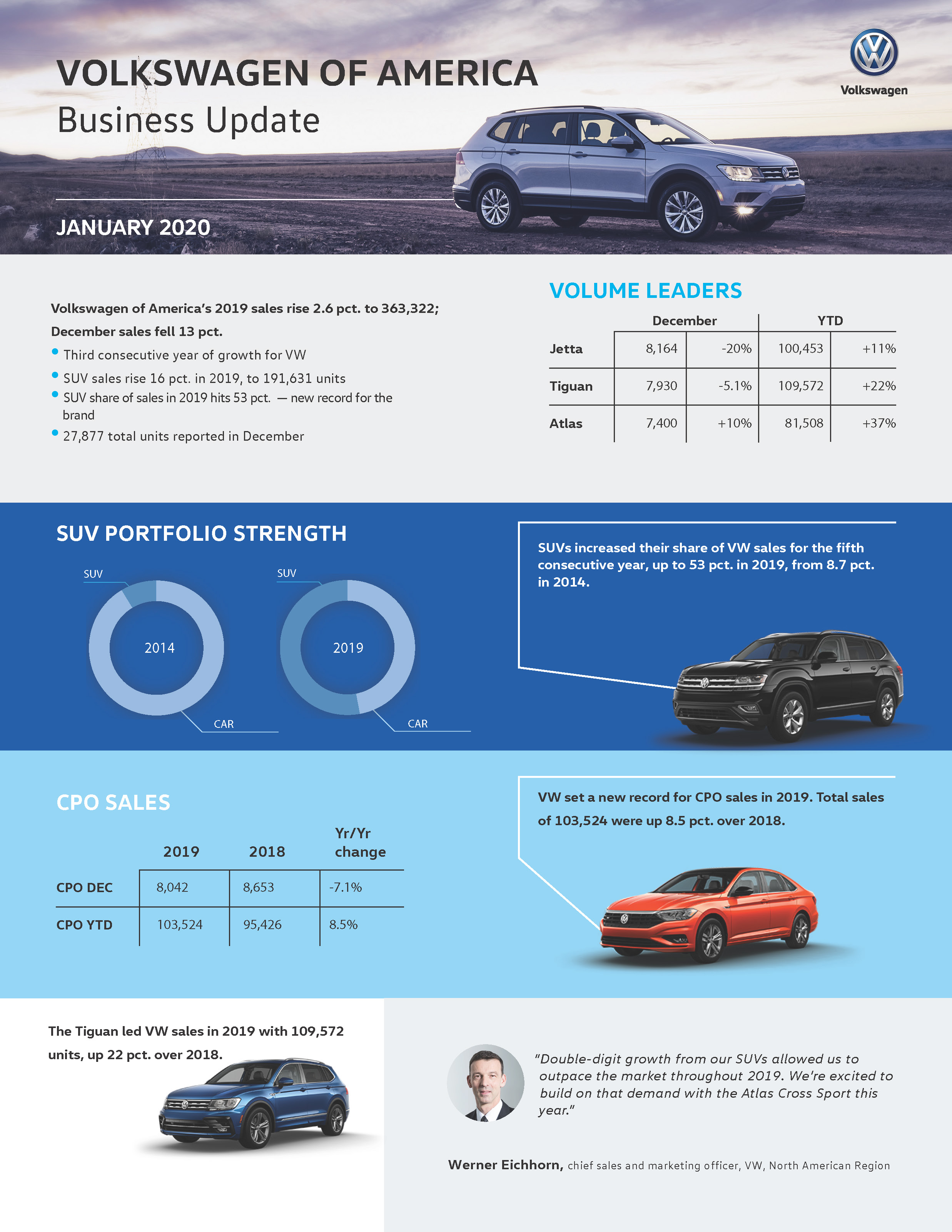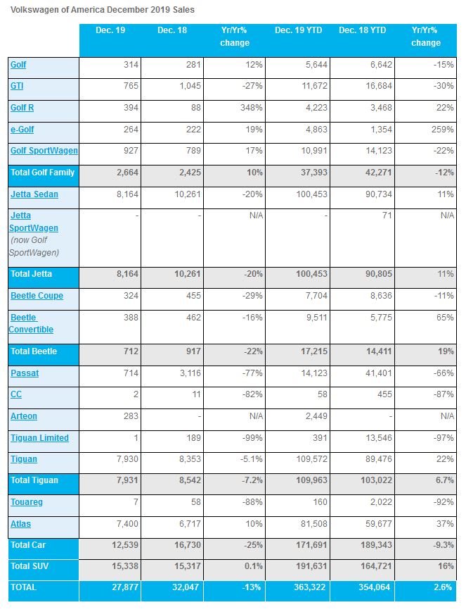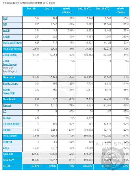 A massive sales decrease of 13% in December failed to cool down a progressive 2019 as VW outpaced it's Japanese counterparts.