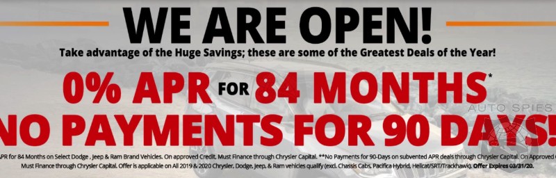 On our cover pic, a big FCA just posted a cover offer...to let people know they are open and that there are now 84 month ZERO interest deals on virtually ALL of their products.