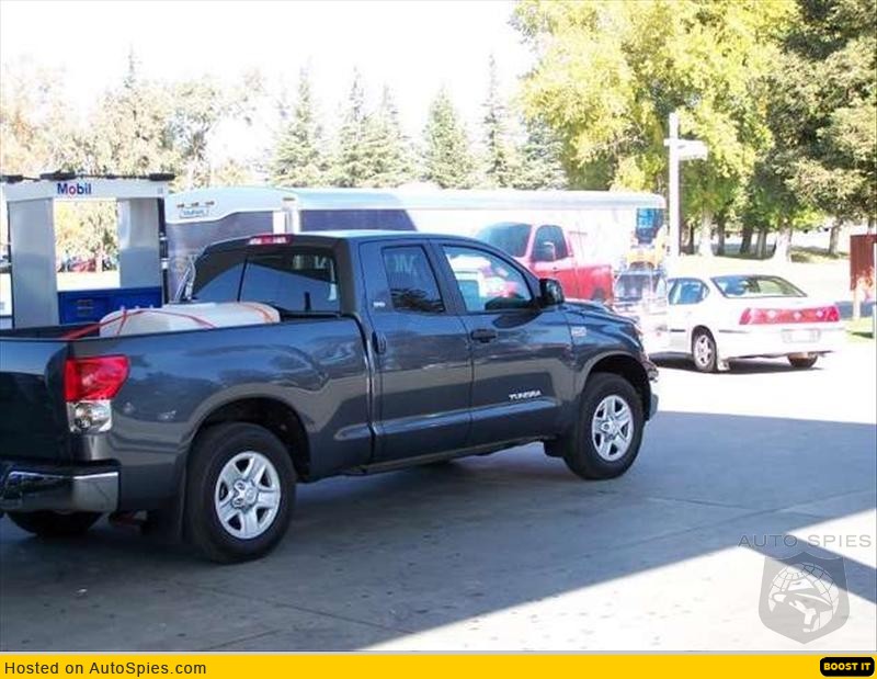 Dear 001, I caught these 2 Tundra's in central CA last Friday refueling. They were each towing another truck in their trailors. As soon as they stopped, they were swarmed by eveyyone at the gas station to get a peak. Ben