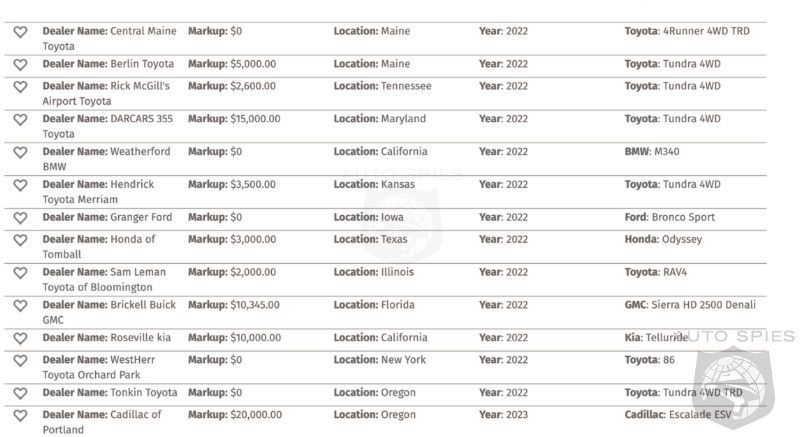 It’s a frustrating time to be a car buyer right now. Markups are all over the place. Not knowing who is marking up what, or being told one price over the phone or email and then being hit with a markup when you get to the dealer, can be frustrating. Luckily, someone out there has all of our backs. That person created a website that tracks markups all over the country and lists them in one place.