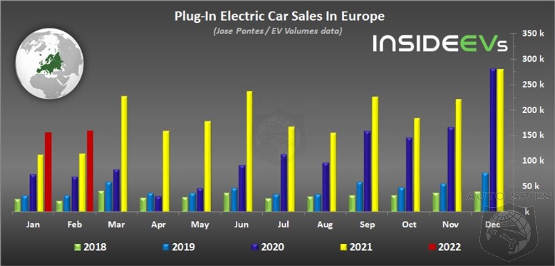 According to EV Volumes' data, shared by Jose Pontes, nearly 160,000 new passenger plug-in cars were registered in Europe last month, which is 38% more than a year ago.