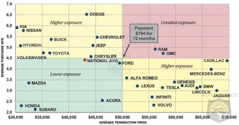 A Cox Automotive analysis of new-vehicle sale prices and average interest rates suggests certain General Motors and Stellantis brands have the greatest exposure to higher rates.