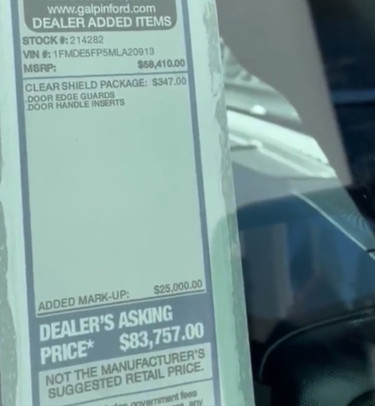 Check out the window sticker courtesy of some neanderthal at Galpin Ford.