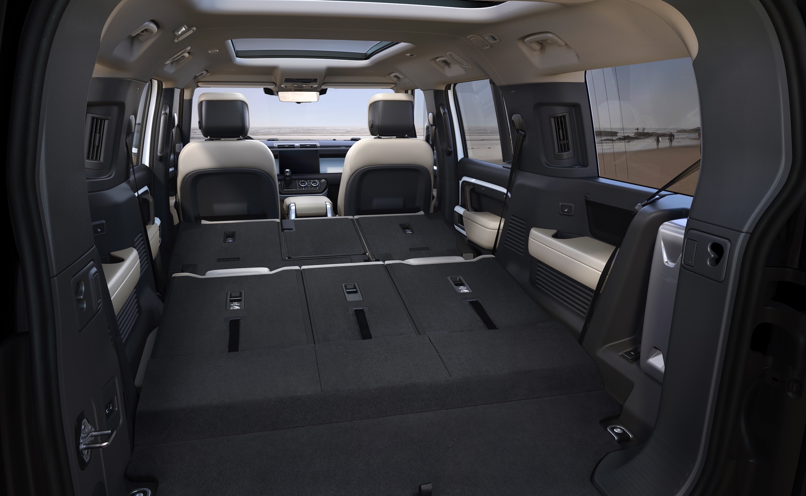 Defender 130 provides a spacious and practical load area, with up to 13.7 cubic feet of cargo volume even with the rearmost seats in place. When the seats are not in use, they stow to create a large loading area, giving customers the ultimate choice in configuring the interior arrangement that best suits their needs. They are split in 40:20:40 configuration for added convenience.