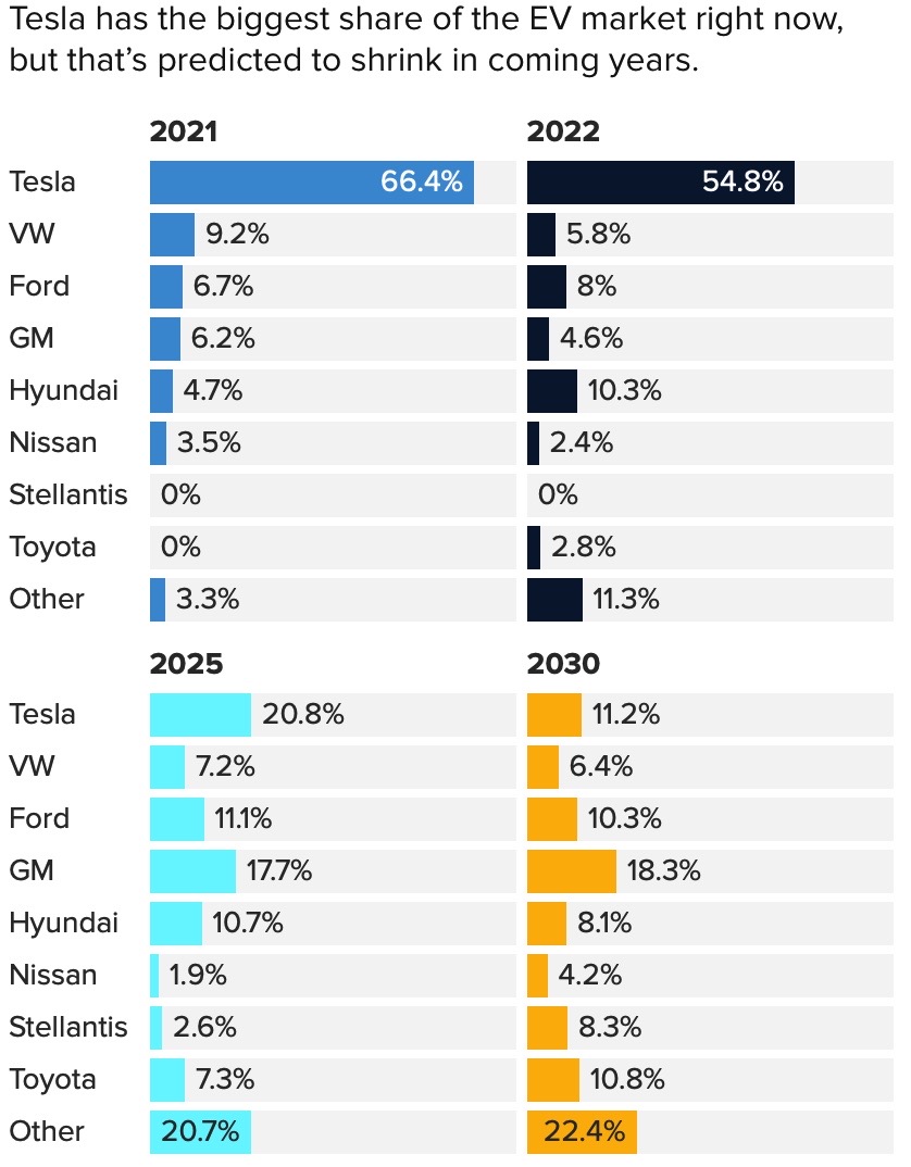 It is almost five years since GM made its big declaration, yet the numbers still aren’t in GM’s favor — at least not for the moment. Tesla still has a dominant 66% of the small but rapidly growing U.S. electric vehicle market, according to LMC Automotive, while GM has just 6%, as production has been slow to ramp up. It’s also being outsold by Ford and Hyundai Motor.
