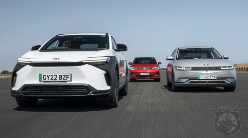 This is the bZ4X: an all-electric Toyota that is a rival for the Hyundai Ioniq 5 and Volkswagen ID.4. The bZ4X is joined by its main opponents in this group test. In these trims, each positioned near the top of their respective ranges, all three cars offer just under 300 miles of range at a list price of around £50,000.