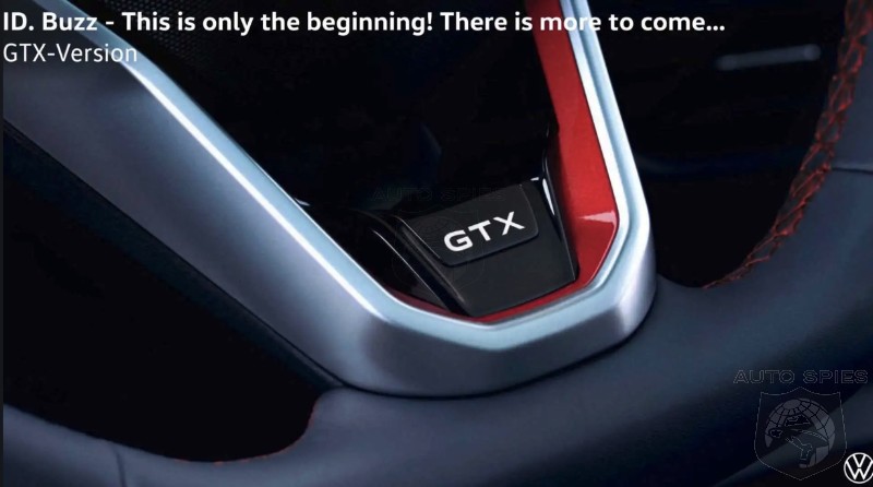 While we already knew the ID. Buzz GTX was in the pipeline, this is the first time we get to see an official teaser with the go-faster variant. Granted, it's just a close-up shot of the steering wheel, but it looks like a cool steering wheel, nevertheless. There's red stitching keeping the leather tight on the rim, red inserts on the main spoke, and a GTX badge.
