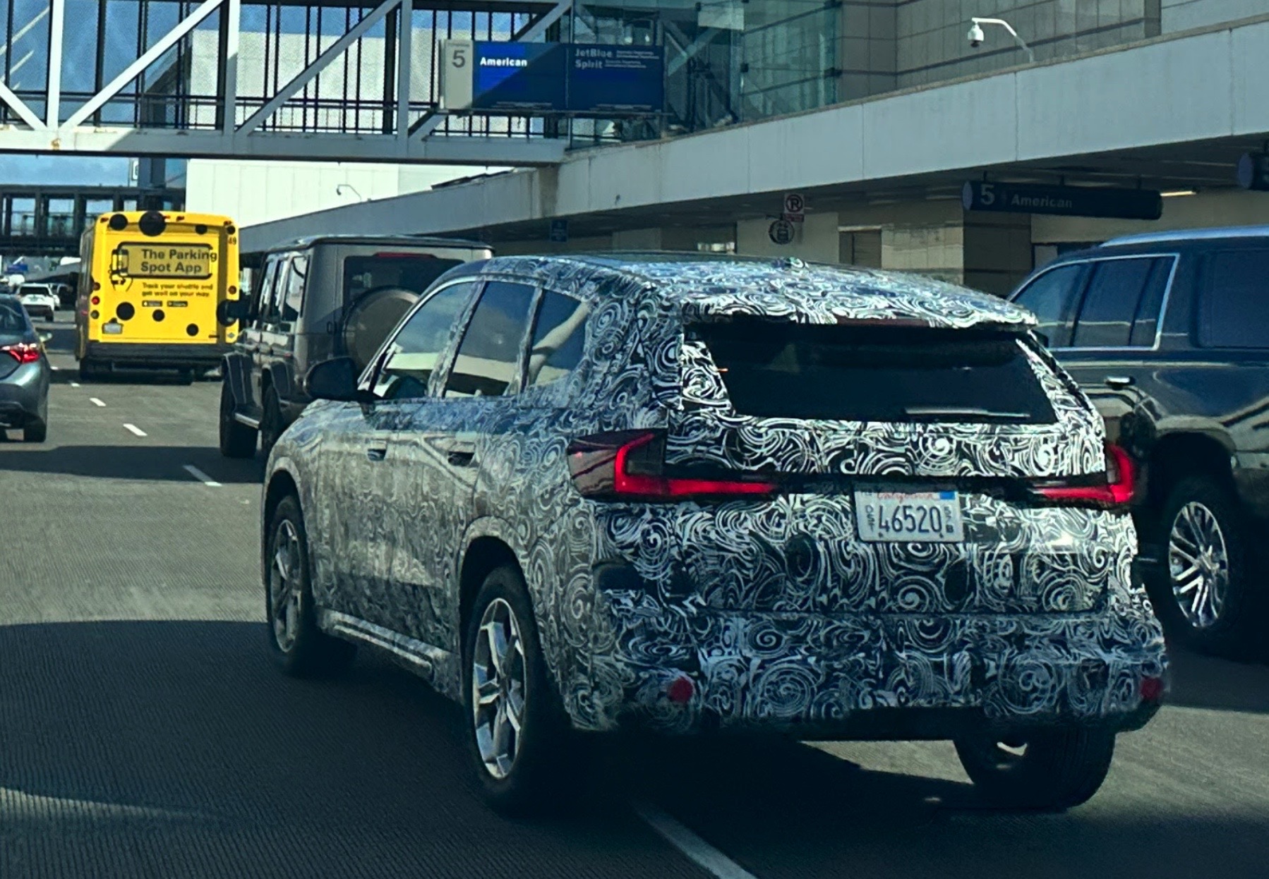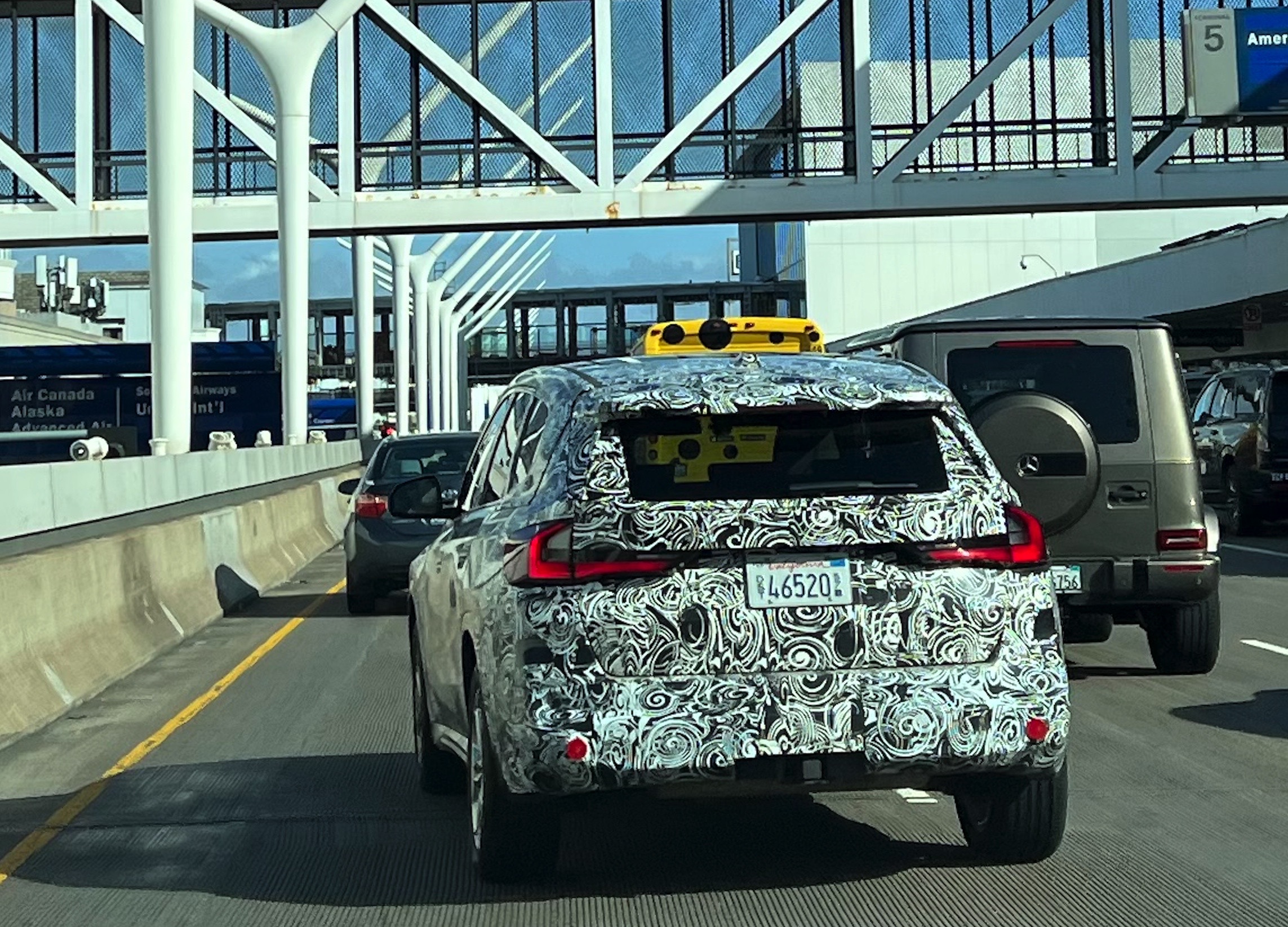 Some people are lucky. Some say you MAKE your OWN luck.Well, we think we're LUCKY AND make luck happen ourselves.Today was just PURE chance.One of the Agents is on a plane for Alaska today to maybe stumble upon some new products in winter testing and hopefully to see the Northern Lights.So imagine our surprise when this pulls by us at LAX this am.We've seen camoed cars in a lot fo strange places, but NOT doing a flight run, dropping off at the airport!