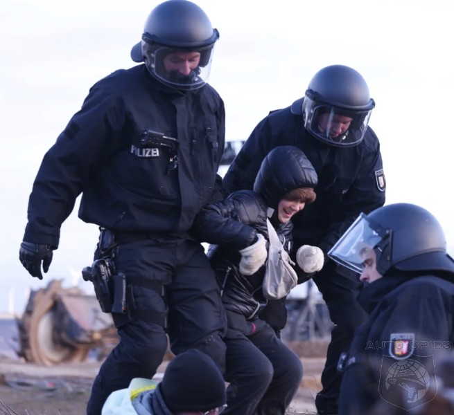 Thunberg, 20, was pictured being manhandled by police as she was forcibly carried away at the protest in Lützerath.