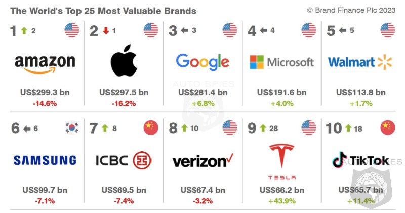 Despite a turbulent year in 2022, Tesla surprised everyone when Brand Finance published its 2023 World’s Most Valuable Brands rankings. The EV maker climbed 19 spots into the hierarchy to claim the number 9 position, ahead of Mercedes-Benz and Toyota.