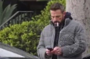 Ben and his Mercedes-Benz were subject to a super tight squeeze Monday in Brentwood, CA ... crammed between 2 other parked cars along a curb. You can see him smoking a cig with his Dunkin' on the top of the car before working on his escape.