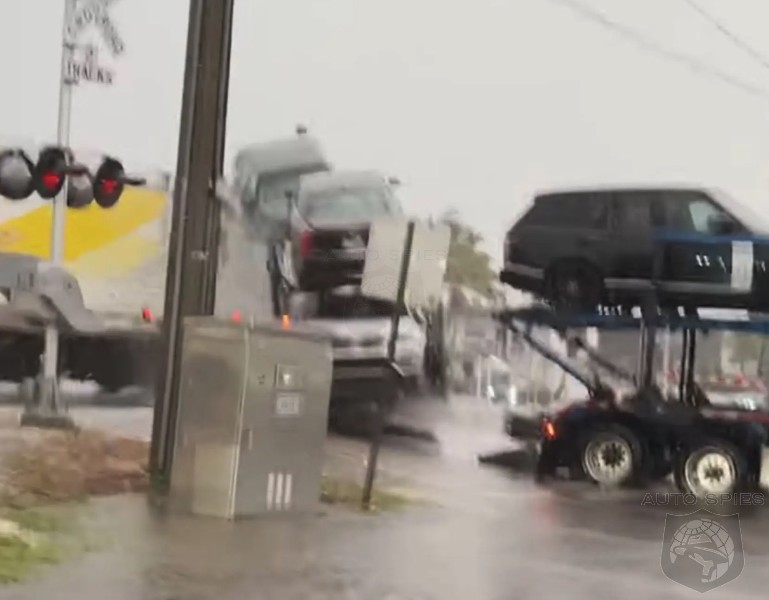 A passenger train plowed into and decimated a car hauler trailer in south Florida on Wednesday when it became stuck on railroad tracks amid biblical rainfall.