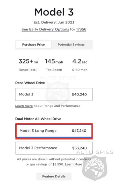 Tesla is offering the new configuration in addition to the Model 3 Rear-Wheel Drive and Model 3 Performance. Previously, the vehicle was dimmed out on the Design Studio, with the message, “Available in 2023.”
