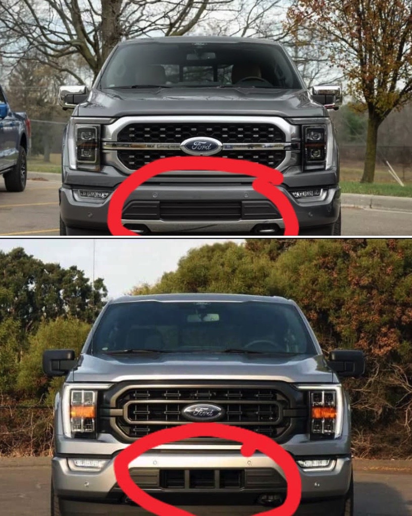 The V6 truck has a bumper with a vent for the turbos, which requires more air flow. On the other hand, the V8 truck (5.0) doesn't have a vent because it doesn't have turbos.