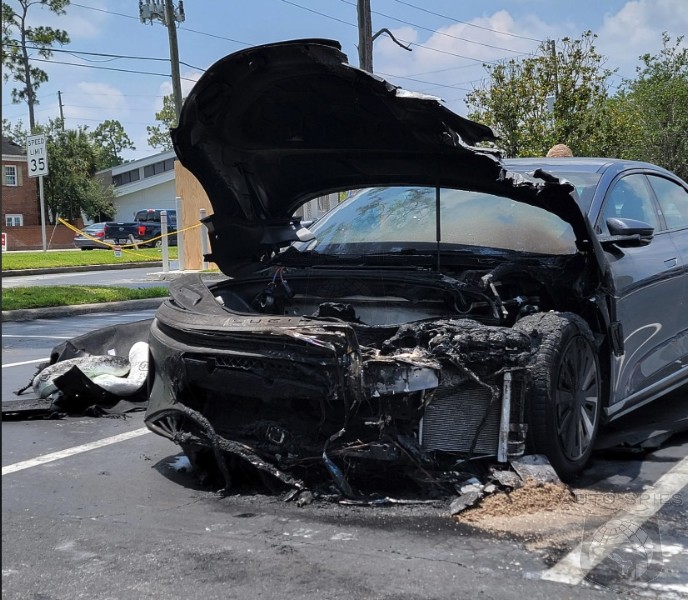 As per the original poster, the vehicle – a base Air Pure sedan – started smoking while stationary, and ultimately the smoke evolved into flames, which led to the front end being destroyed. The fire was safely extinguished by two fire trucks that came to the scene, as Drive Tesla Canada writes, and nobody was harmed. Furthermore, there was no property damage, as the vehicle was parked far enough away from other cars and buildings.