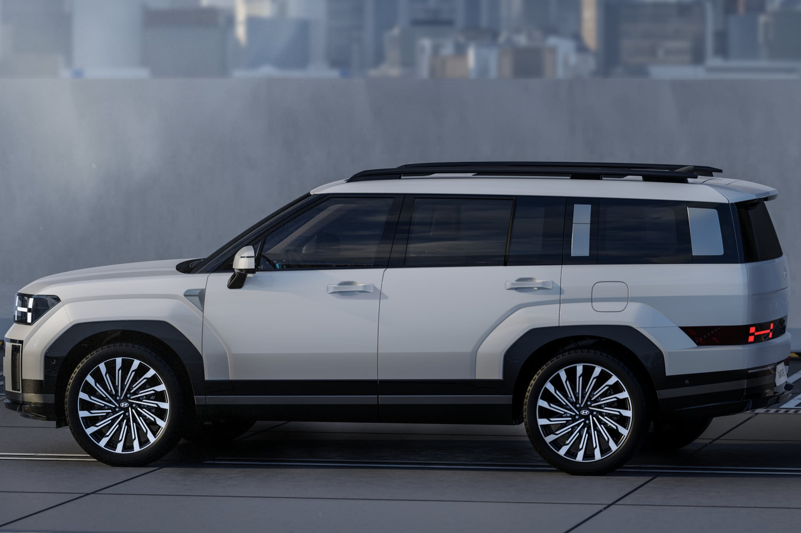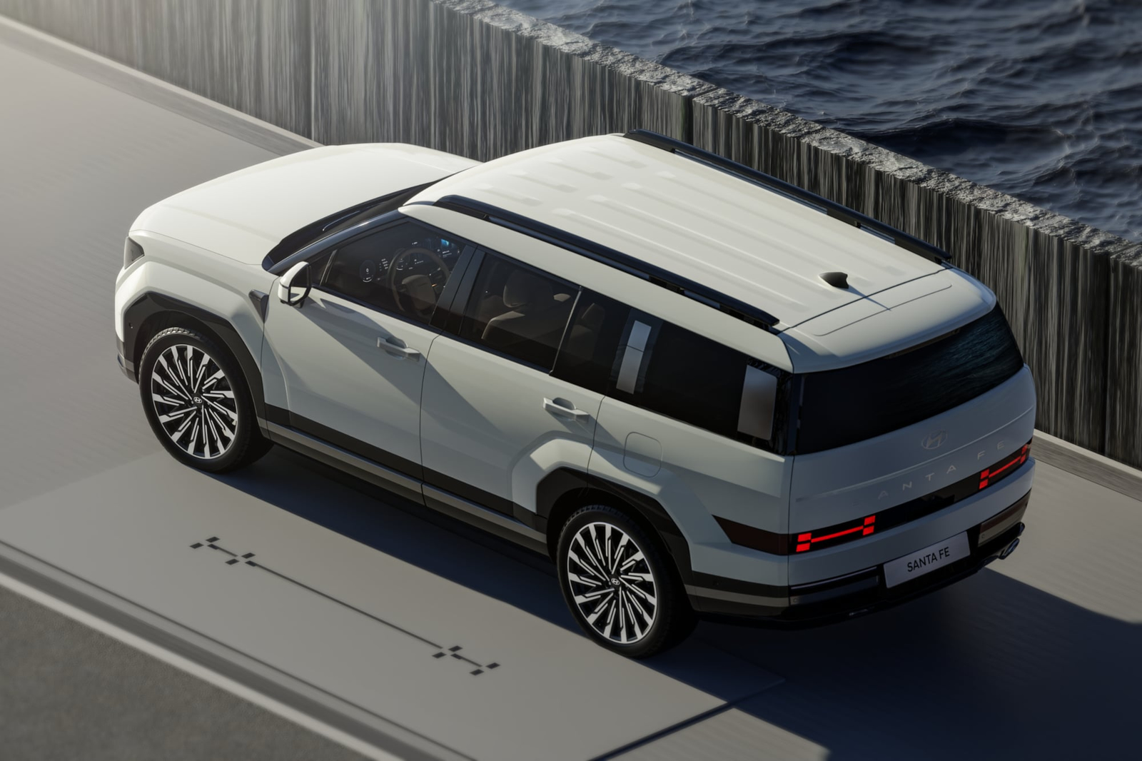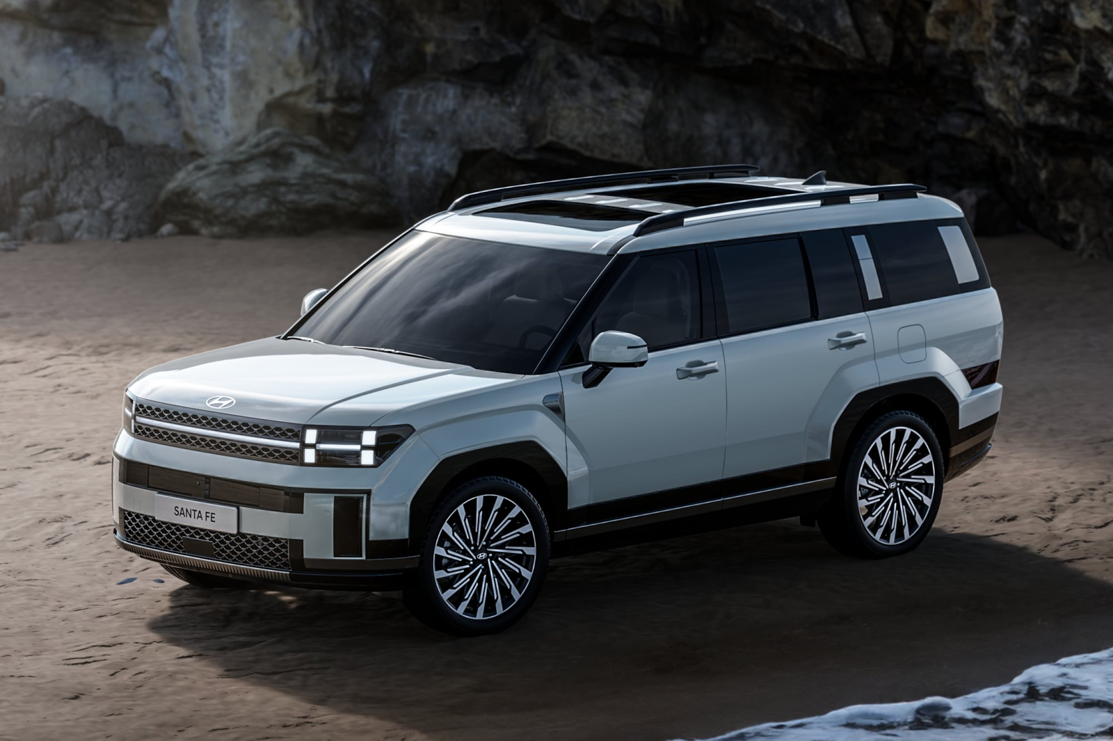 The all-new Santa Fe’s boxy shape and distinctive silhouette are derived from its long wheelbase and wide tailgate area.