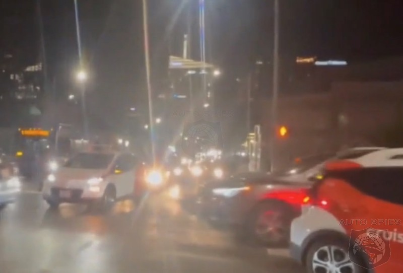 In a video taken late last night in downtown Austin, one self-driving Cruise car sits at a complete stop in the middle of an intersection, and another in a turning lane, as people in the area watch in confusion.