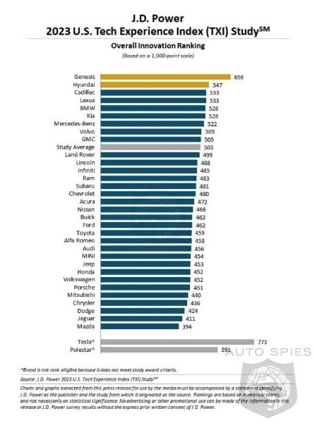 The U.S. Tech Experience Index (TXI) Study complements the annual J.D. Power U.S. Initial Quality Study (IQS) and the J.D. Power U.S. Automotive Performance, Execution and Layout (APEAL) Study by measuring how effectively each automotive brand brings new technologies to market. The U.S. Tech Experience Index (TXI) Study combines the level of adoption of new technologies for each brand with excellence in execution. The execution measurement examines how much owners like the technologies and how many problems they experience while using them.