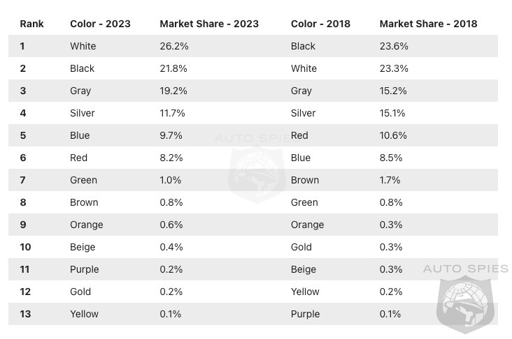 Recently, a study by I See Cars analyzed the most popular car colors for Model Year 2023 vehicles and found that monochromatic colors made up a staggering 78.9% of the market. Just let that sink in. Four out of every five cars on the road are some form of white, black, gray, or silver. How absolutely mundane.