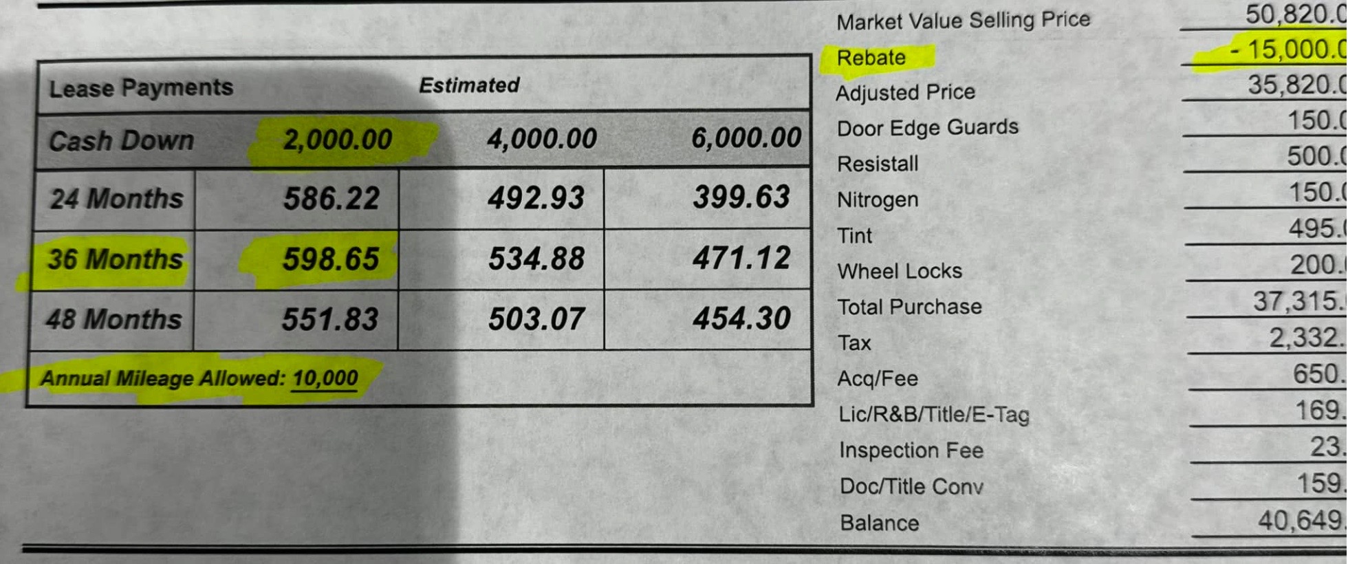 Here is the current deal sheet on a 2023 Hyundai Ioniq 5.
