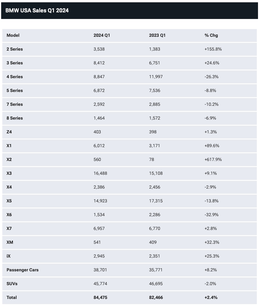 In total, BMW moved 10,713 units of its i4s, i5s, i7s, and iXs during the first quarter of 2024. This translates to electric vehicles comprising an impressive 12.7% of the German carmaker’s total sales, with Americans snapping up 84,475 BMWs overall during that timeframe.