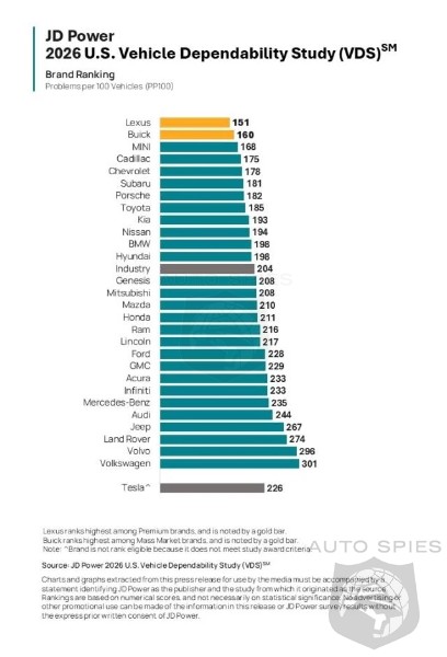 With modern vehicles now running more lines of code than early space missions, owner perceptions of vehicle dependability have become increasingly influenced by technology performance and software glitches. According to the JD Power 2026 U.S. Vehicle Dependability StudySM (VDS), released today, persistent problems with infotainment systems, spotty performance of over-the-air (OTA) software updates, and issues with vehicle exteriors have driven long-term dependability problems to new highs. Compared with 2025 results, vehicle problems after three years of ownership have increased by 2 problems per 100 vehicles (PP100), resulting in an industry average of 204 PP100. A lower score indicates higher vehicle quality.