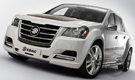 Part Ridgeline, part 'Slade, part Tartan 3700, many parts Viagra and sharing the name of a rebadged Isuzu, it's the EDAG LUV. The LUV, which stands for Luxury Utility Vehicle, will debut in Geneva. It's a showcase for the substantial talents of EDAG, and the vehicle is quite the engineer's masterpiece, if a vulgar display of bourgeoisie.