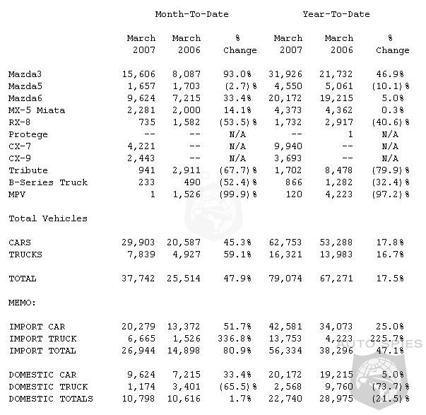 of 37,742 while Mazda Canada, Inc. reported its best-ever March with sales