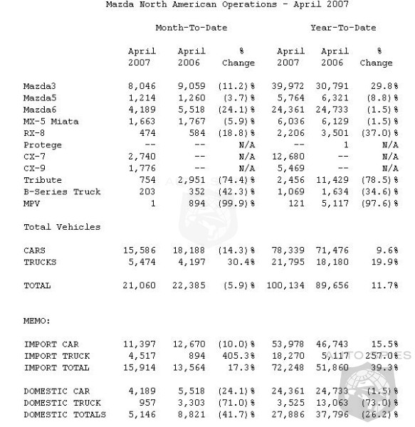 today reported U.S. sales of 21,060 in April 2007, a drop of 5.9 percent