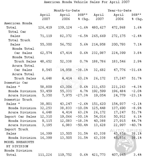 posted sales of 126,419 Honda and Acura vehicles in April, down 1.6 percent
